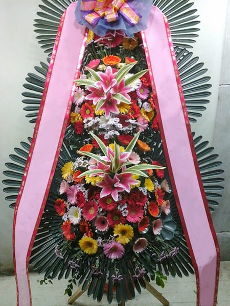 결혼식 화환은 조금 더 화려하게 장식된 3단 화환이 기본으로 가장 많이 사용됩니다.